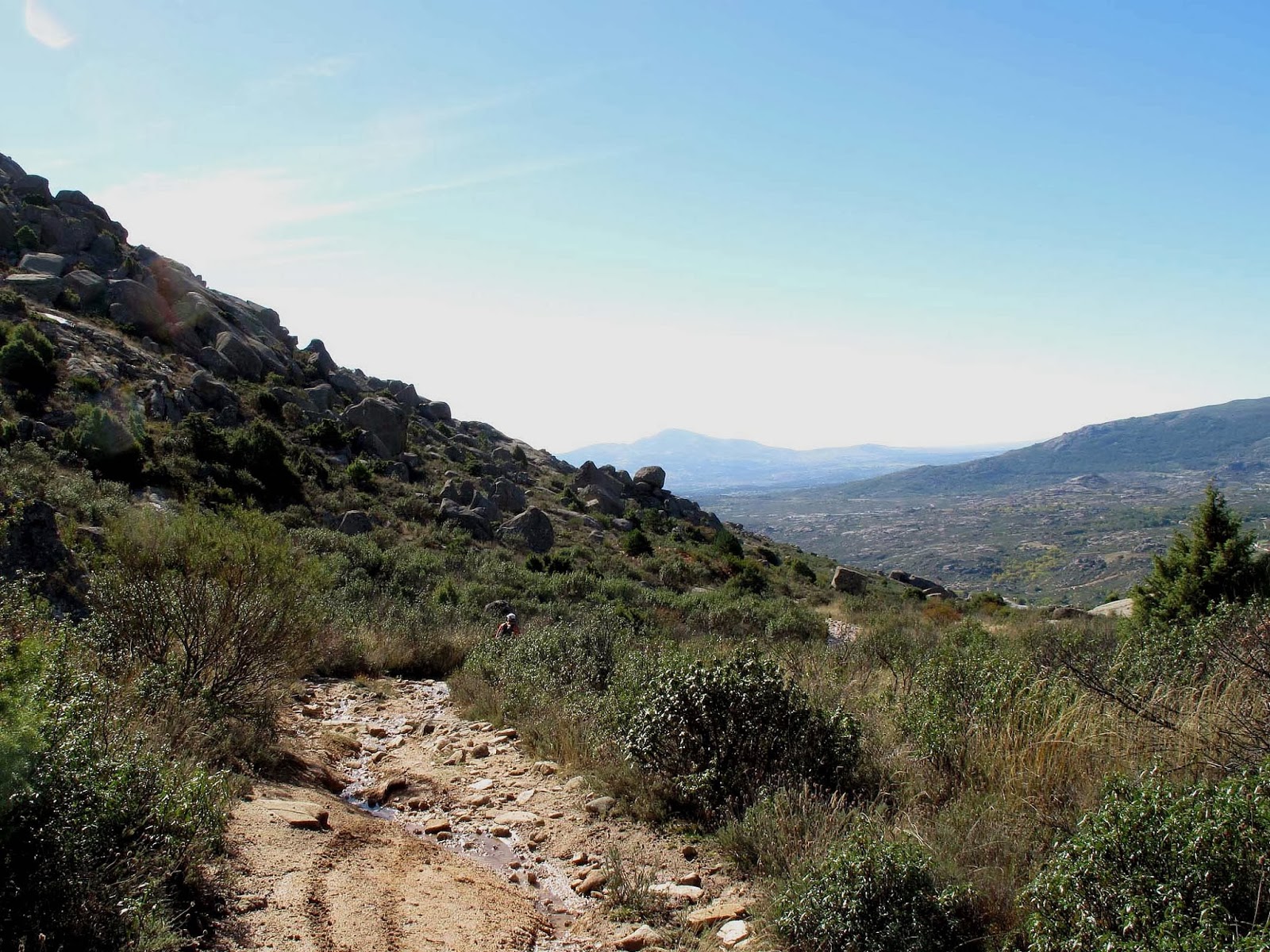 | Por la pista de la mina, hacia el Valle de la Jarosa y el pueblo de Guadarrama. |