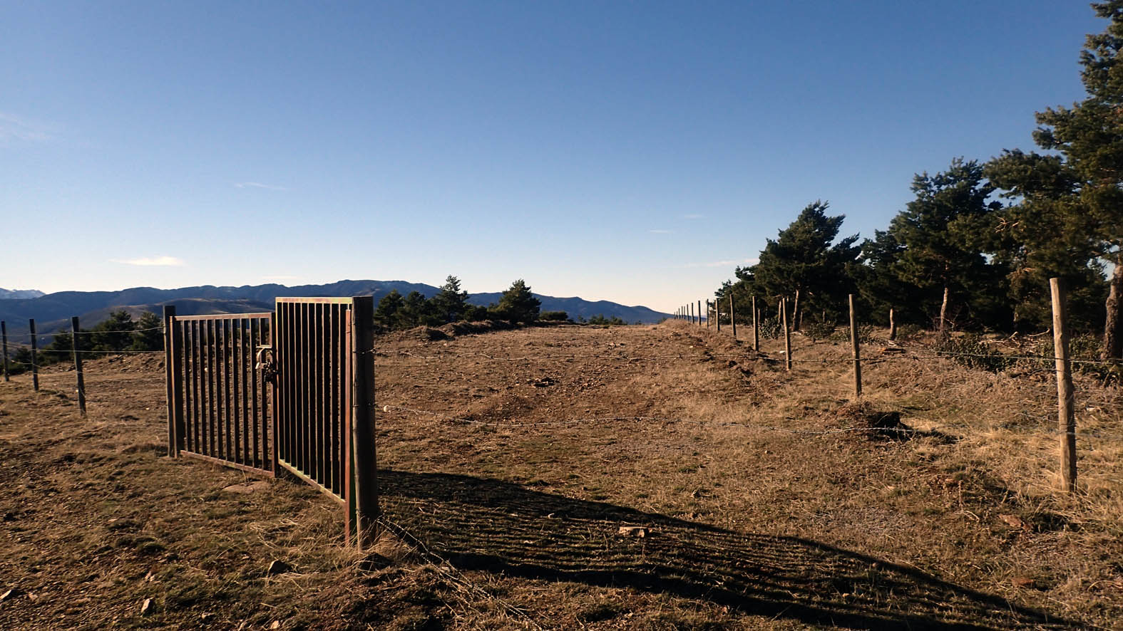 | Desde el collado, cruzamos las puertas para girar al Este paralelos al vallado. |